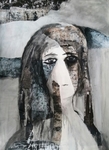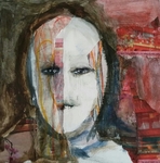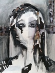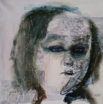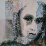2016Door een combinatie van tekeningen van mezelf en stukjes tijdschrift en hierover een portret te schilderen, is een boeiend beeld ontstaan vol emotie.