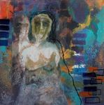 2019Samengaan van geschillende technieken zoals portret met acrylverf, monotype, was en schilderen op plexiglas. In een 3D lijst ingelijst zodat reliëf en schaduwval een belangrijk onderdeel is van het werk.