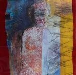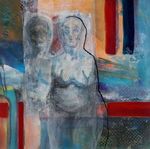 2019vrouw in relief vorm , de schoonheid van de imperfectie. combinatie van technieken touchdrawing, werken met was, en schilderen op plexieglas