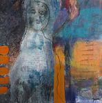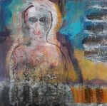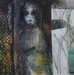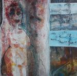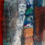 2019Samengaan van geschillende technieken zoals monotype, was en schilderen op plexiglas. Op het plexiglas een afdruk van het gezicht van de vrouw. In een 3D lijst ingelijst zodat reliëf en schaduwval een belangrijk onderdeel is van het werk.