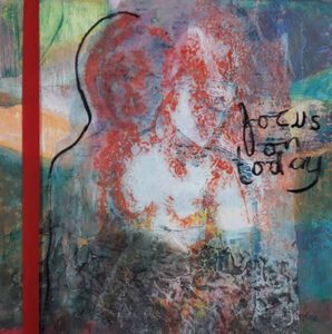 2020Het werk is gemaakt in coronatijd. Achtergrond met acrylverf en was met een druktechniek. Er is ruimte tussen plexiglas en achtergrond. De vrouwvorm is gekreukeld, waardoor een 3D werking ontstaat. Op het plexiglas staat een lijn en tekst, waardoor bij lichtval een schaduwlijn op de achtergrond ontstaat. Deze schaduwlijnen zijn een wezelijk onderdeel van het werk.